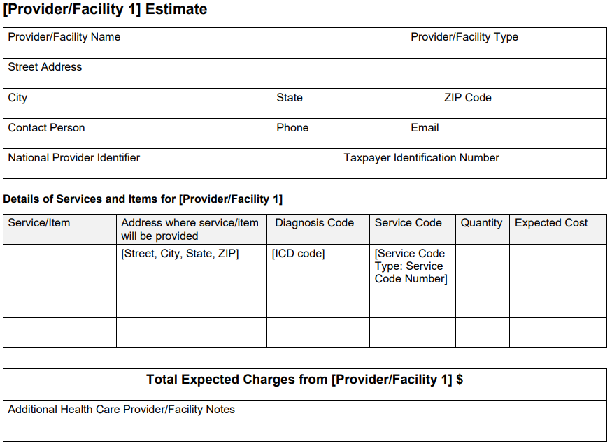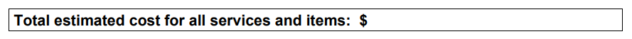 - If there is only one provider, you will list the total of their estimated costs in the "Total estimated cost for all services and items."
