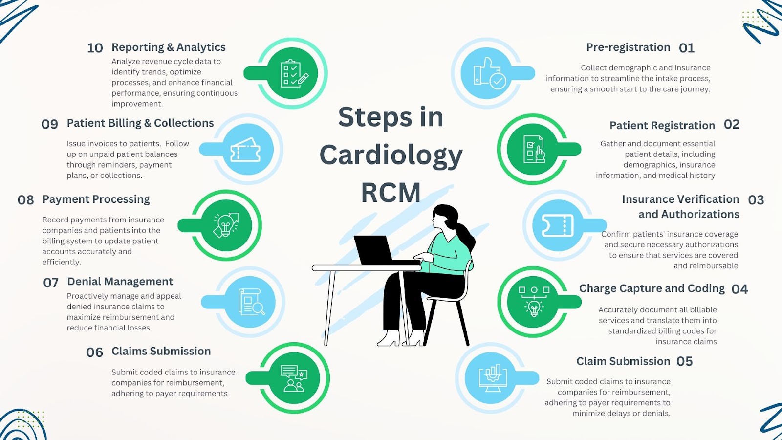 - Sustainability and growth: By optimizing revenue capture and reducing administrative burdens, RCM enables cardiology practices to remain competitive and focus on delivering high-quality patient care.