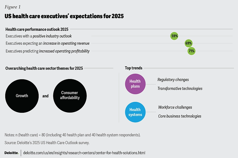 When consulting giant Deloitte surveyed 80 healthcare leaders at large ($500 million in revenue) health systems, 59% expressed a favorable growth forecast – up from 52% the previous year.