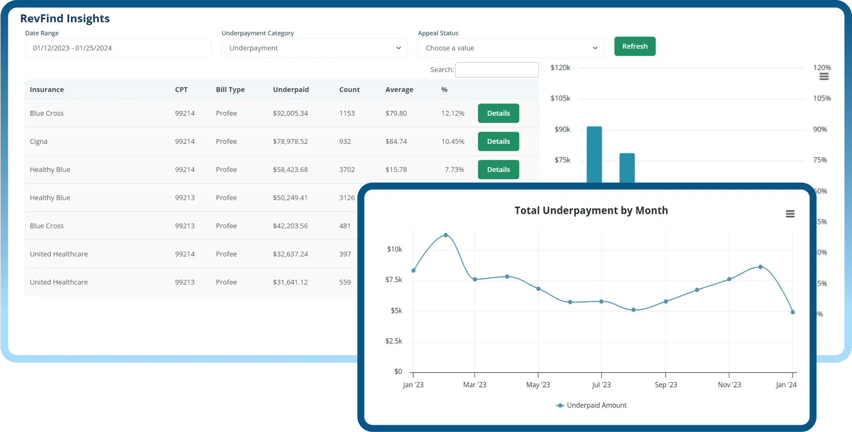 Maximize payer reimbursement by augmenting our underpayment and denial management software with our proven revenue recovery experts